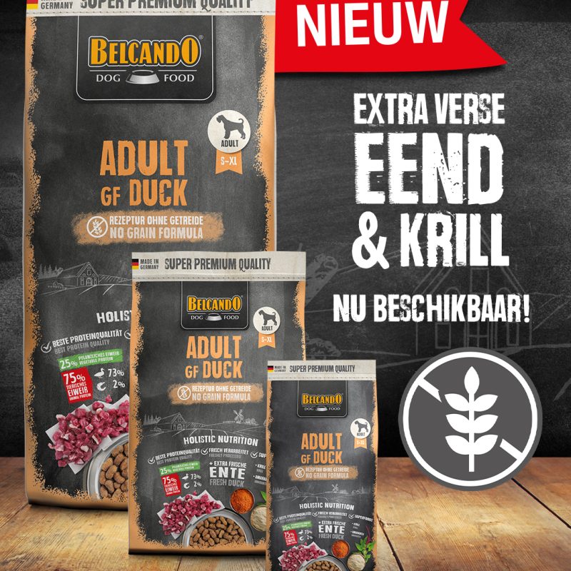 Belcando Adult graanvrij Duck, volledig voer voor volwassen honden met een normale tot verhoogde activiteit en gevoeligheid voor graan.