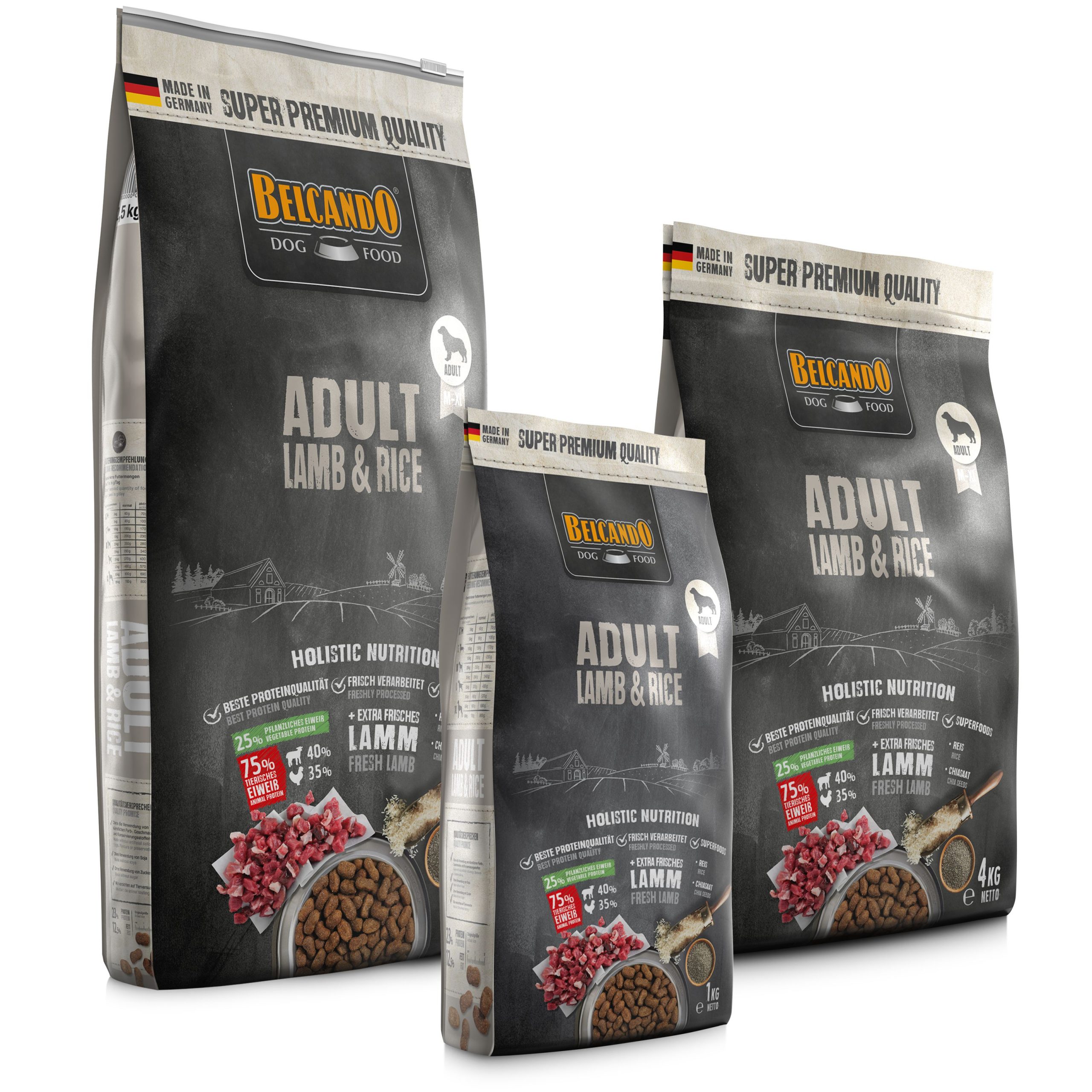 Samenstelling: Rijst (40 %); Vers lamsvlees, -lever en -long (totaal: 30 %); Pluimvee-eiwit, asarm, gedroogd (12,5 %); Lamseiwit, gedroogd (10 %); Voerhavermeel; Druivenpitexpeller; Bakkersgist, gedroogd; Chiazaad (1,5 %); Havermoutafvalmeel; Lijnzaad; Pluimveelever, gehydrolyseerd; Pluimveevet; Natriumchloride; Kaliumchloride; Kruiden, gedroogd (totaal: 0,2 %; Brandnetelblad, Gentiaanwortel, Duizendguldenkruid, Kamille, Venkel, Karwij, Maretakkruid, Duizendbladkruid, Braambladeren); Yucca schidigera