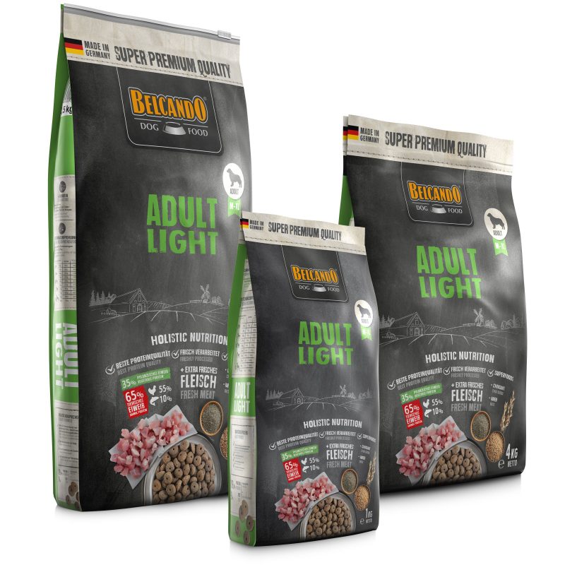 Zorgvuldig geselecteerde grondstoffen, licht verteerbaar pluimvee en haver voor een snel vol gevoel en spijsverteringstimulerend chiazaad maken van BELCANDO® Adult Light het gezonde voer voor honden die minder actief zijn of overgewicht hebben. Het gehalte aan eiwit en vet is beduidend verminderd en is aan de behoeften van deze honden aangepast. Een hoog vezel-aandeel zorgt bij de aanbevolen voerdosering voor een constant of afnemend lichaamsgewicht zonder hongergevoel. De vetverbranding wordt verder ondersteund door de van nature in het vlees voorkomende eiwitverbinding L-Carnitine.