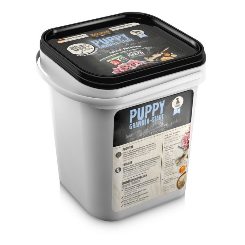 Op verzoek van vele hondenfokkers die hun puppy’s met BELCANDO® voeden, bieden wij nu ook een speciaal product voor de eerste gewenning aan vaste voeding. BELCANDO® PUPPY GRANULA-START wordt in een speciaal proces op een bepaalde grootte “gegranuleerd”. Het resultaat is een vaste structuur in een zeer kleine deeltjesgrootte (0,2 – 0,4 mm). BELCANDO® PUPPY GRANULA-START kan daardoor zeer goed met BELCANDO® Puppymelk of water tot een pap gemengd worden. Of meng het met vlees. De kleine brokken kunnen na een korte tijd ook droog gegeven worden. Door variatie in de vloeistoftoevoeging kan de fokker makkelijk individuen sturen of zijn jonge dieren eerder smeuïg of vastere consistentie aanbieden. De snelle gewenning aan vaste voeding en een soepele overgang naar gebruikelijke BELCANDO® PUPPY-voeding wordt daardoor – vooral bij kleine rassen – vergemakkelijkt.
