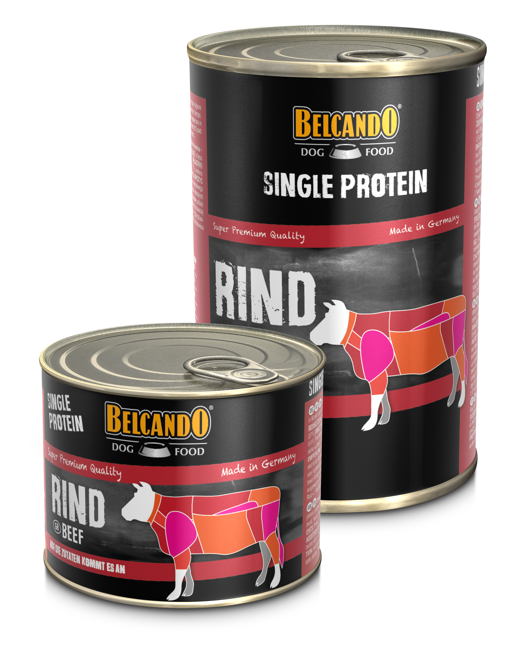 Verkrijgbaar in zes geselecteerde vleessoorten zonder toevoegingen, die ook in combinatie met het voedingssupplement BELCANDO® MIX IT GF ( droogvoer ) gevoerd kan worden voor een diagnose (eliminatiedieet) en als standaard bij voedselallergieën. Aanbevolen dagelijkse hoeveelheden voer BELCANDO® Single Protein. Voor een uitgebalanceerd rantsoen aanvulling op de helft van het bedrag van BELCANDO® MIX IT GF.
