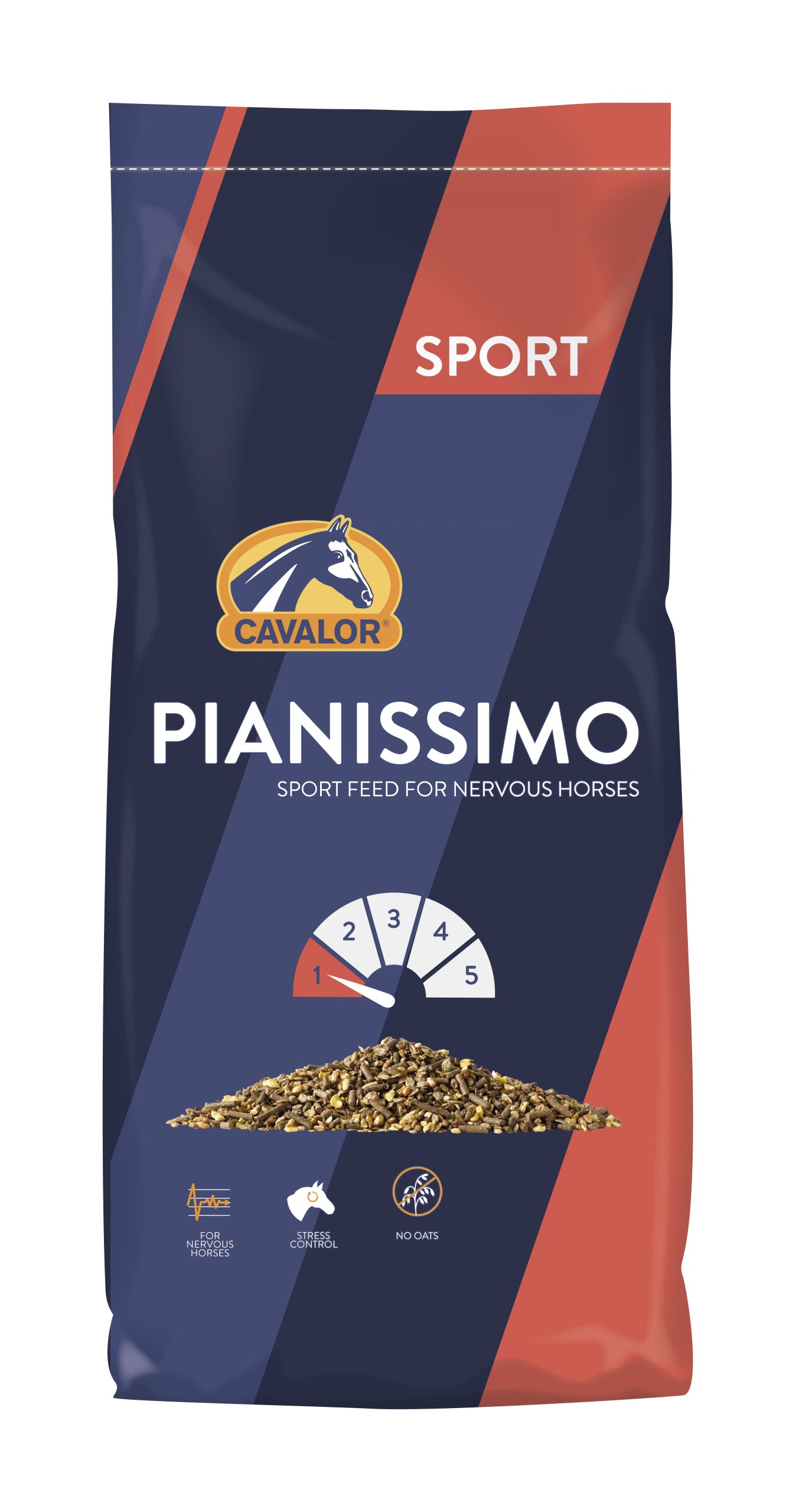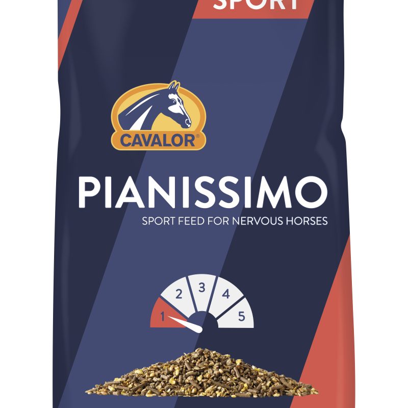 Cavalor® Pianissimo is speciaal samengesteld voor paarden die last hebben van “stress” of zich moeilijk laten berijden. Cavalor® Pianissimo bevat alle voedingscomponenten voor een evenwichtige en complete voeding voor een sportpaard. Het is uitstekend geschikt voor paarden die op rust staan. Om deze paarden niet te veel energie te geven, wordt gewoonlijk minder krachtvoer gegeven en meer ruwvoer. Hierdoor ontstaat echter een gebrek aan evenwicht in de voeding. Cavalor® Pianissimo heeft een zeer laag eiwitgehalte (7,75 % Vre) waardoor het heel goed te gebruiken is naast ruwvoer, dat zeer rijk is aan eiwit (zoals kuilgras of voorjaarsgras). Immers, overmaat aan eiwit in het voederrantsoen is sterk af te raden. Het lage eiwitgehalte maakt dat Cavalor® Pianissimo ook geschikt is voor paarden die aan het “aftrainen” zijn na een seizoen, paarden die tijdelijk op rust staan (herstel), paarden die gevoelig zijn voor een teveel aan eiwitten en voordrooggras als ruwvoer krijgen. Bovendien werd Cavalor® Pianissimo verrijkt met OMEGA 3 PLUS, dit ondersteunt de algemene fitheid van het paard. FLORASTIMUL draagt bij aan een goed darmevenwicht en een gezond verteringsstelsel.