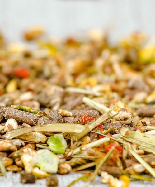 Gevarieerd vezelrijk onderhoudsvoer, zonder haver.