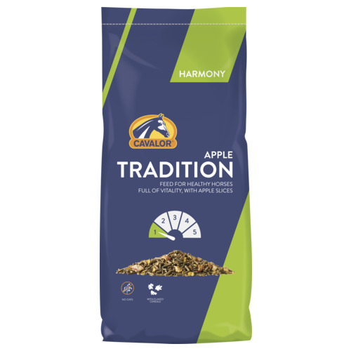 Cavalor Tradition Apple is een mengeling zonder haver voor recreatie of paarden op rust met een appel smaak voor de kieskeurige eters
