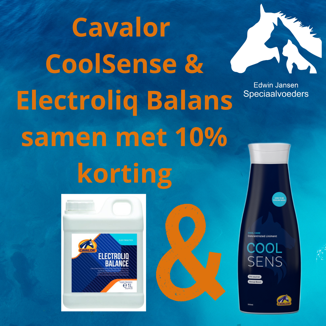 Cavalor CoolSense voor een cooling down en een goed herstel van de spieren na gedane arbeid met je paard en Electroliq om snel en goed de electrolyen balans weer op orde te maken. Nu samen in een zomer pakket aanbieding