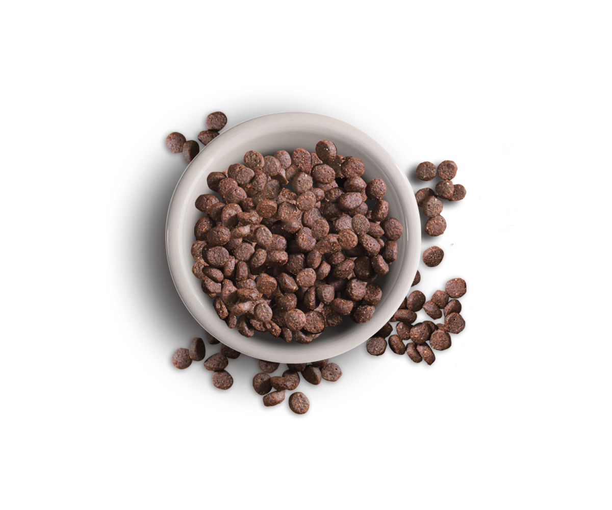 Ingrediënten: pluimveevleesmeel, asarm (30%; 20% van eend); rijst (25%); pluimveevet; rogge, egmout (4%); aardappelzetmeel; zoöplankton, gemalen (krill, 2,5%); ei, gedroogd; bakkersgist, gedroogd; pluimveelever, gehydrolyseerd; haringmeel; druivenpitexpeller (1,5%); johannesbroodpitmeel, gedroogd; lijnzaad (1,1%); guarpitmeel; natriumchloride; witlof inuline. – Vlees van dieren die ook geschikt zijn voor de menselijke consumptie. Zonder kunstmatige geur-, kleur- en smaakstoffen of conserveringsmiddelen.