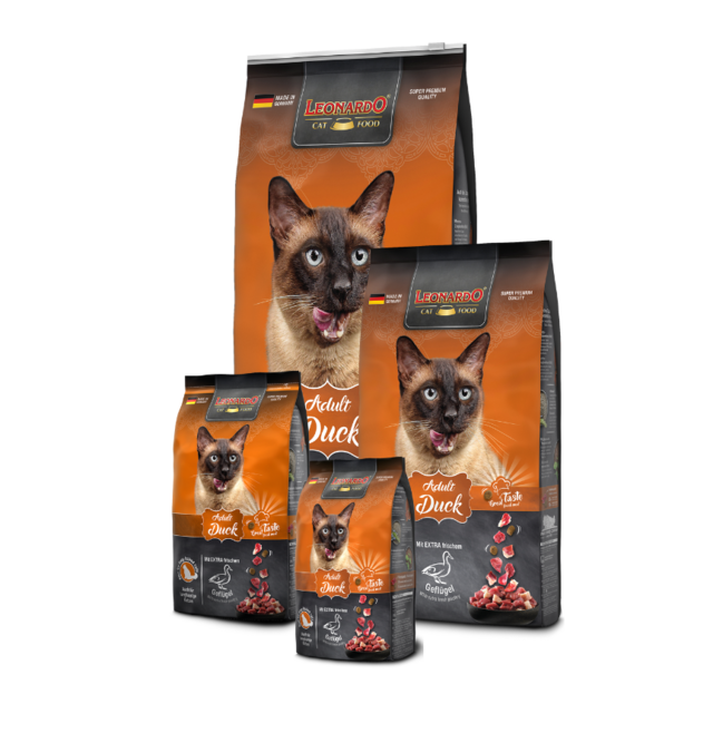Voor volwassen katten vanaf één jaar. Leonardo Adult Duck met eend en rijst is een lekkere variant van de Leonardo Adult lijn. Kieskeurige katten hebben de neiging sneller hun eetlust te verliezen, wat soms kan leiden tot voedselintolerantie. Daarom hebben wij rundvlees, tarwe en maïsgluten weggelaten. In plaats daarvan gebruiken we licht verteerbare rijst en als eiwitbron pluimvee (eend, kip, enz.) en krill.