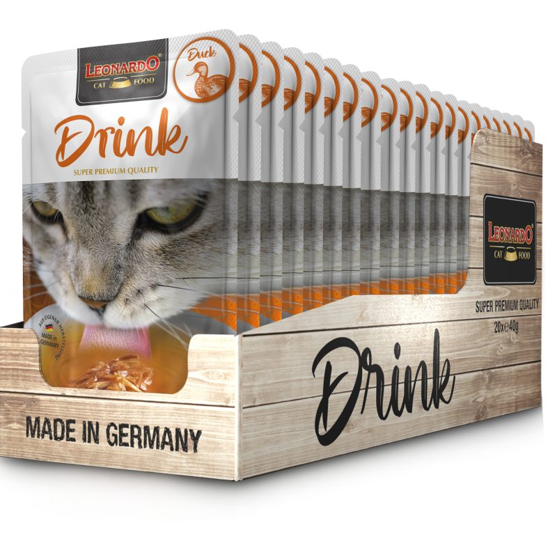 Leonardo Drink is een aanvullende voeding voor katten om de absorptie van vloeistoffen te bevorderen