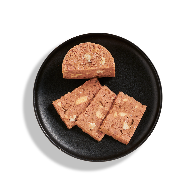 Verkrijgbaar in de smaken: Zalm, Kalkoen, Wild, Lam, Haring, in blikken van 200 gram en 400 gram.