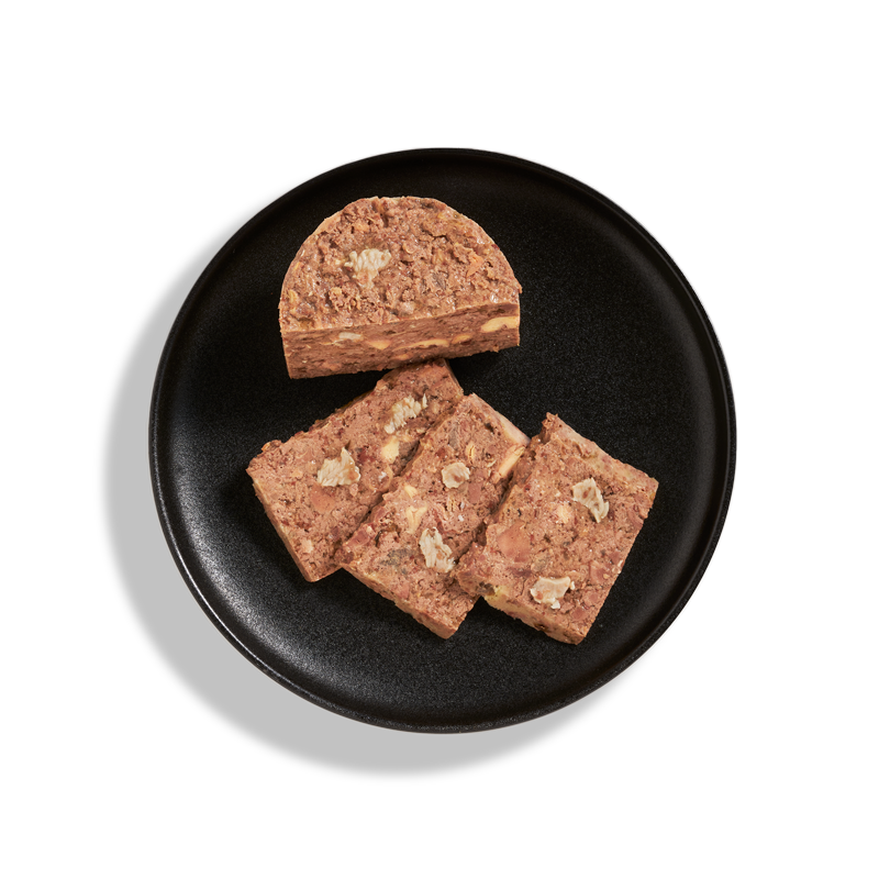 Verkrijgbaar in de smaken: Zalm, Kalkoen, Wild, Kip, Haring, in blikken van 200 gram en 400 gram.