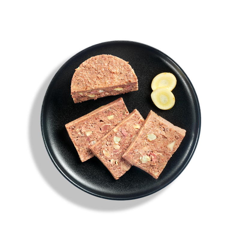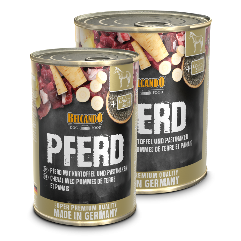 Volledig diervoeder voor honden. Verkrijgbaar in zeven uitgezochte soorten, die wij vanzelfsprekend uit gecontroleerde Duitse landbouw kopen. Wij gebruiken geen geperst vlees, maar complete stukken vlees, die voorzichtig gegaard worden. Elk menu wordt met geselecteerde ingrediënten verfijnd en bevat hoogwaardige distelolie, rijk aan onverzadigde vetzuren.