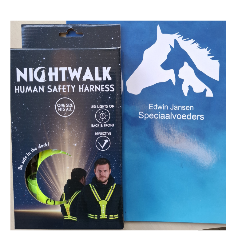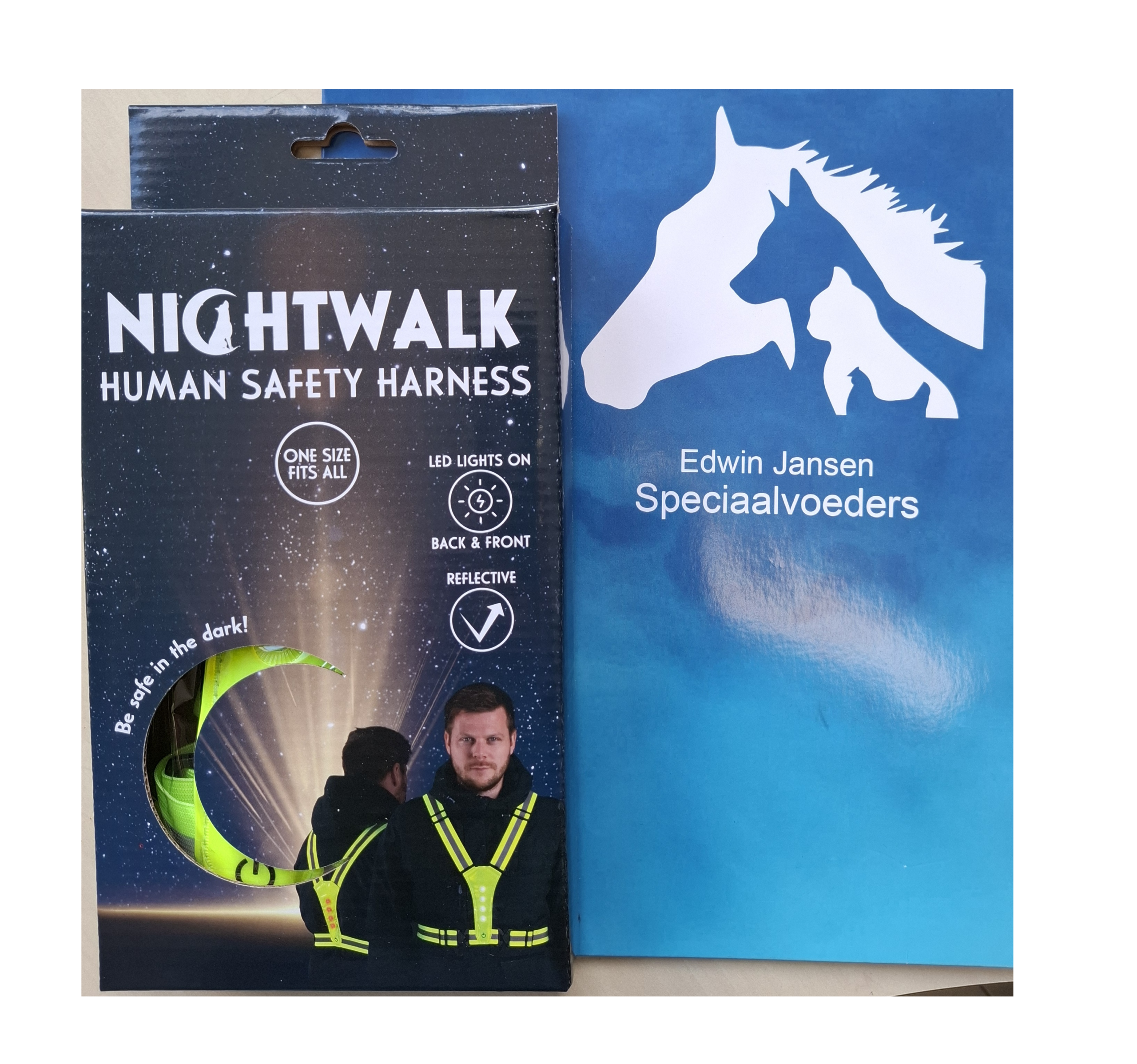Een veiligheidsvest met verlichting waarmee je goed opvalt tijdens de avond wandeling